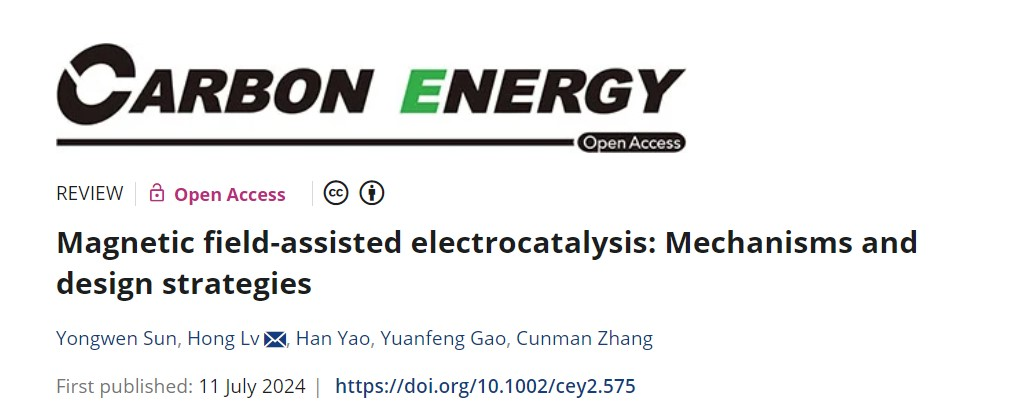 Yongwen Sun, Hong Lv, et al. Magnetic field‐assisted electrocatalysis: mechanisms and design strategies.Carbon Energy. 2024;e575.
