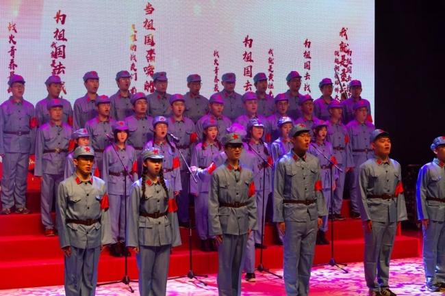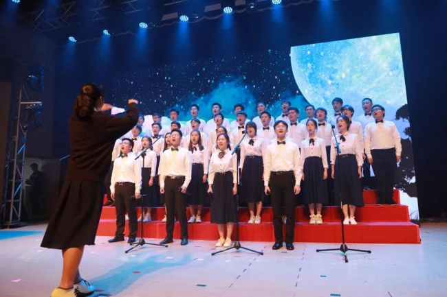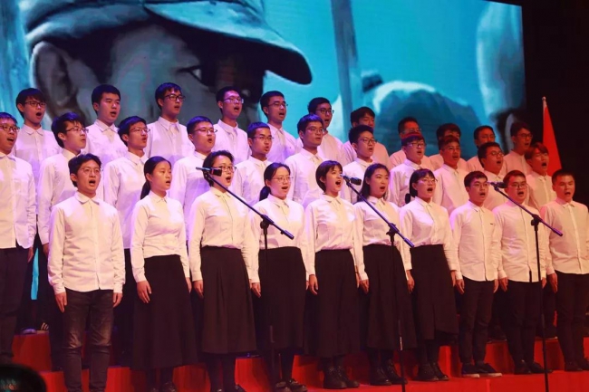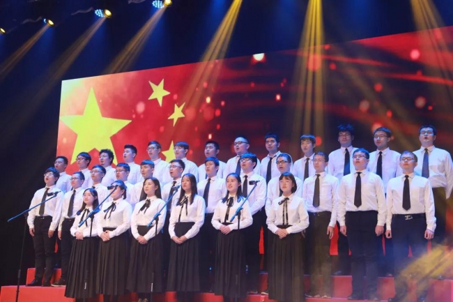 各年级共14支参赛队伍放声高歌,展现了赤诚的爱国之情和不忘革命初心,勇担时代使命的坚定信念。