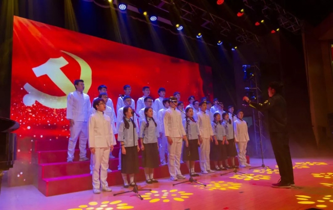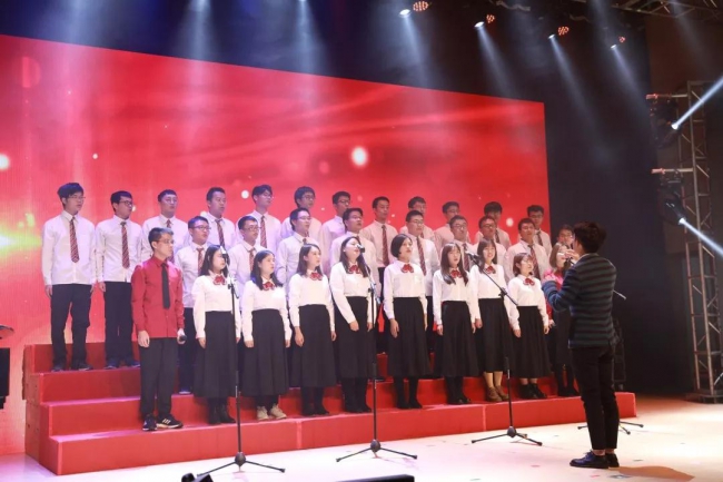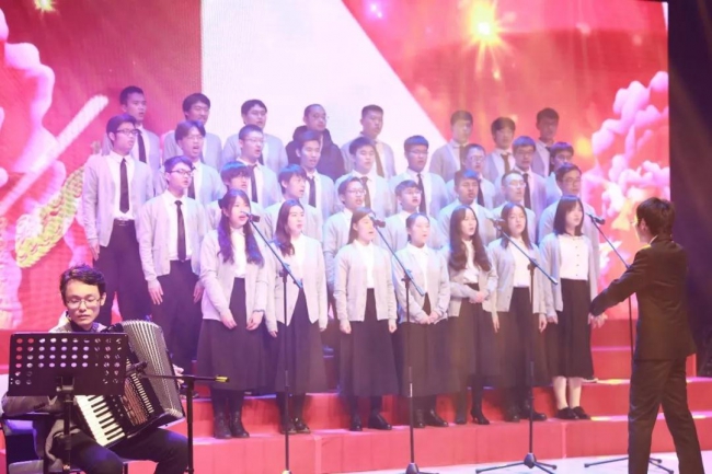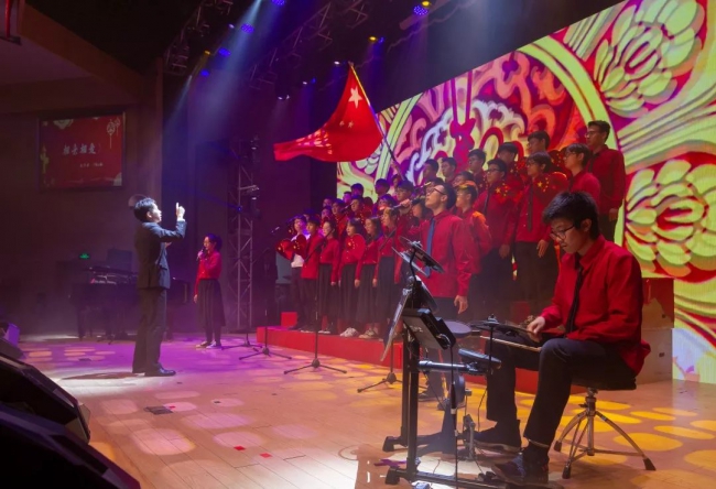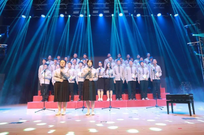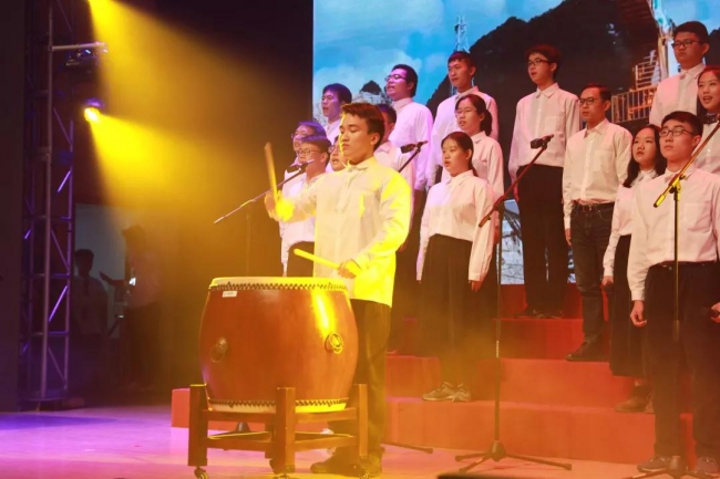 新生院济美学堂的同学将合唱、乐器、舞蹈融在一体,一曲《筑梦中国》致敬峥嵘岁月,放歌伟大新时代。