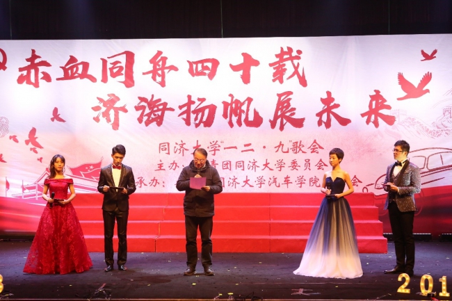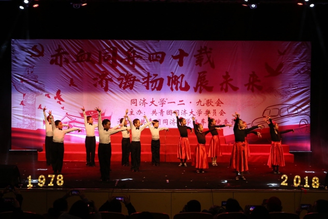 2018“一二·九”歌会于9日晚在嘉定校区济人楼圆满落幕。歌会以“赤血同舟四十载,济海扬帆展未来”为主题,旨在展现同济学子精神风貌, 培养学生家国情怀,敲响时代最强音。