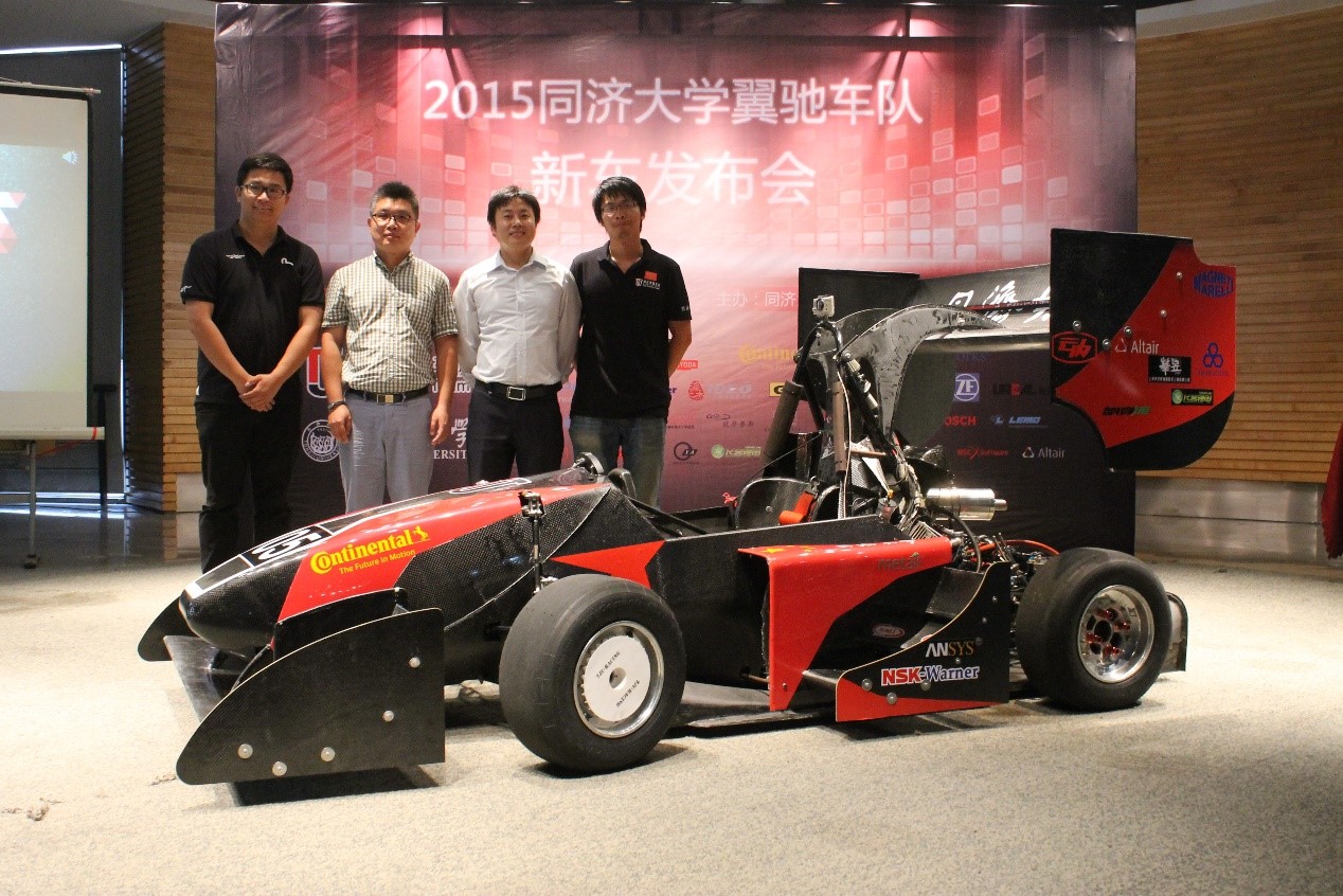 同济翼驰车队铂金级赞助商JTEKT与新车上的公司logo合影