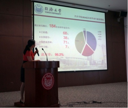 院长余卓平老师简短而温馨的致辞里,有对2014届本科生五年努力奋斗的肯定,有对这些即将走向工作岗位或者继续深造的毕业生们的鼓励,更对这些身为汽院人的2014届本科生们,提出了更高的要求与期望-- 同济汽院人的胸怀。要有沉得住气、默默积蓄的胸怀,不断努力、潜心研究,振兴中国汽车工业的胸怀!