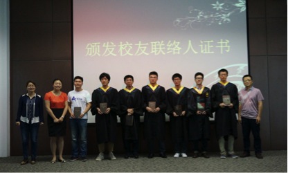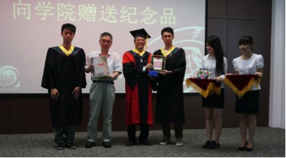 最后,院长余卓平老师、副院长张立军老师等为2014届本科毕业生颁发了毕业证书并依此为每位学生拨穗,授予学士学位。流苏从右至左优雅滑过的一刹那,五年本科生涯奋斗成果尘埃落定。毕业生代表向学院赠送了全体2014届本科生共同精心制作的纪念品:一本具有全体毕业生个性特色的纪念册、许下五年愿景的心愿瓶,及毕业生吴云飞同学自己篆刻的“同行纵横嘉园,济梦驰骋四海”的纪念印章。学院校友会则为班级联络人颁发聘书。