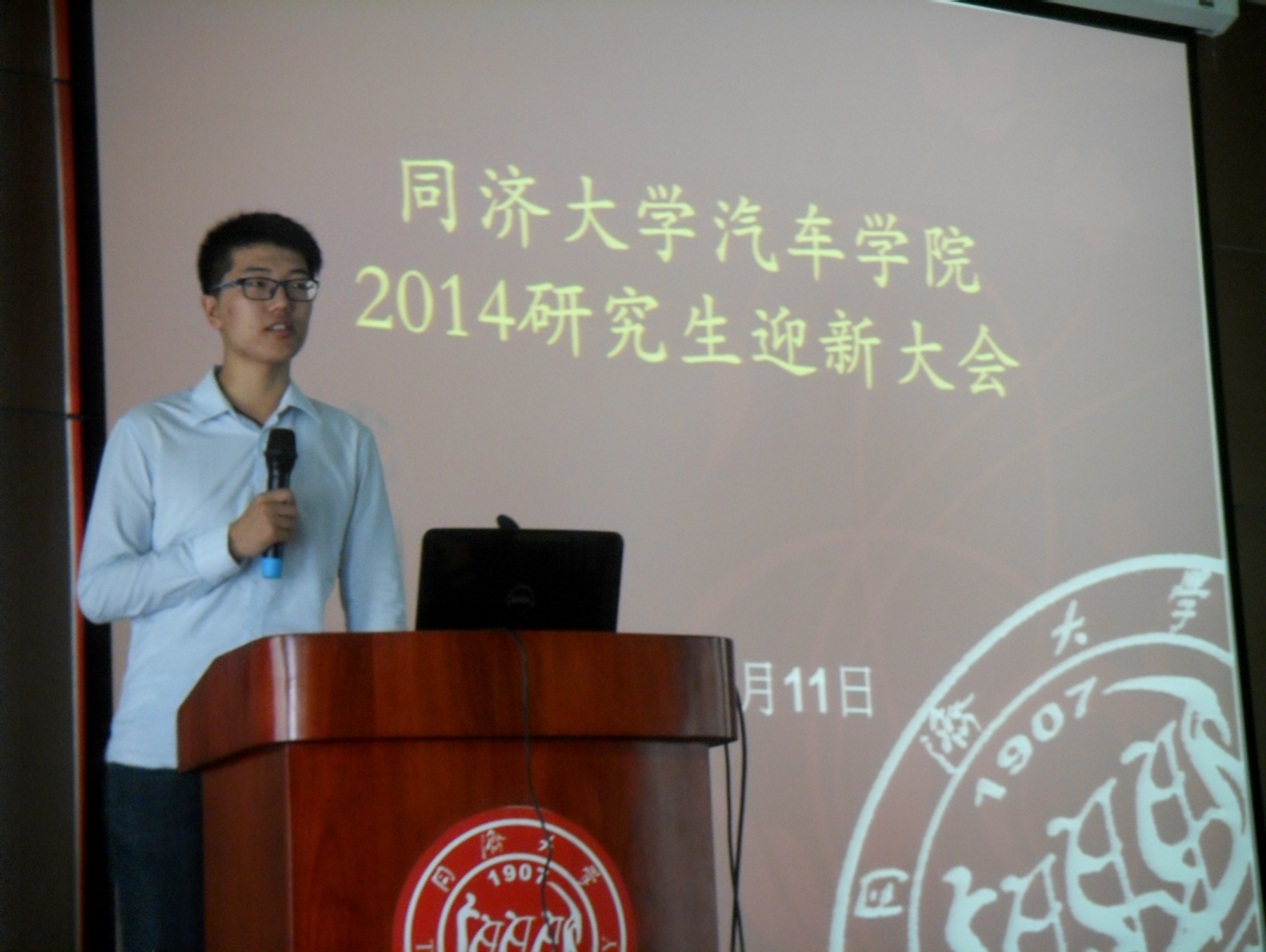 13级博士孙晨乐和2014级学硕二班张浩波同学分别作为老生代表和新生代表发言,孙晨乐同学慷慨激昂地表达了学子们作为同济汽车人的自豪感和不断进取的信心,张浩波同学回顾了自己本科以来在疯情书库