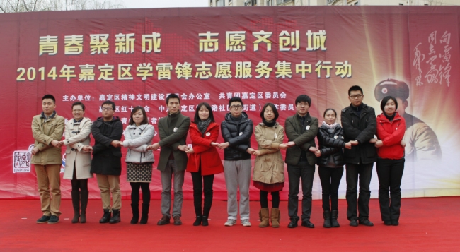 3月1日下午,我校团委与嘉定区团委成立了“区校青年志愿者共建联盟”。青年志愿者们带着绿色校园进社区、安全驾驶服务项目参与了2014年嘉定区学雷锋志愿服务集中行动,嘉定区委副书记周金林、团市委副书记赵亮出席活动。