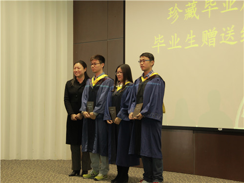 献上2014届毕业生礼物:一本纪念册、一棵樱花树、一个心愿瓶等,以表达对母校的感恩之情,并且表示会竭尽所能维系学院与毕业生之间的沟通桥梁,为学院尽自己的一份绵薄之力。
