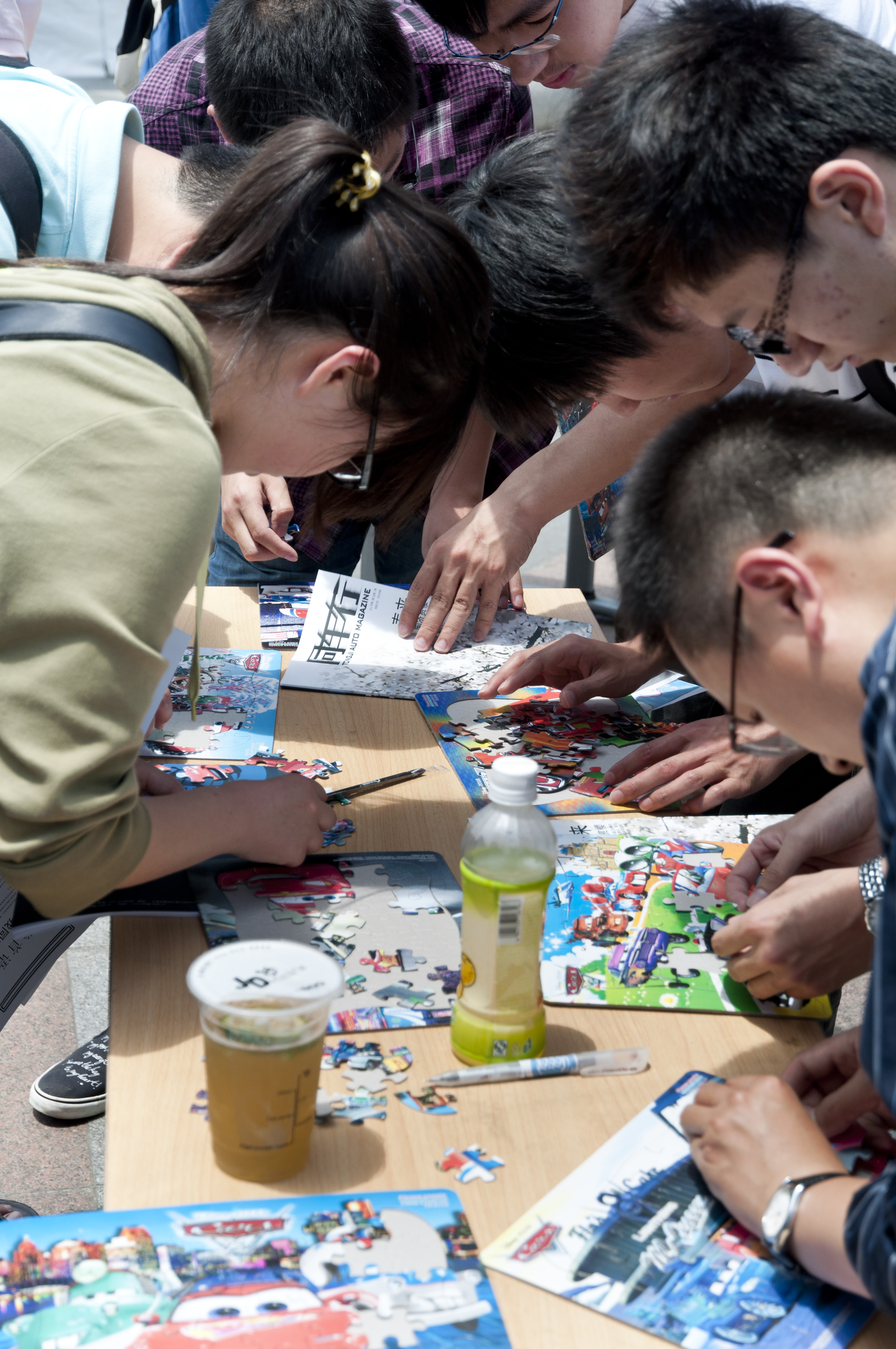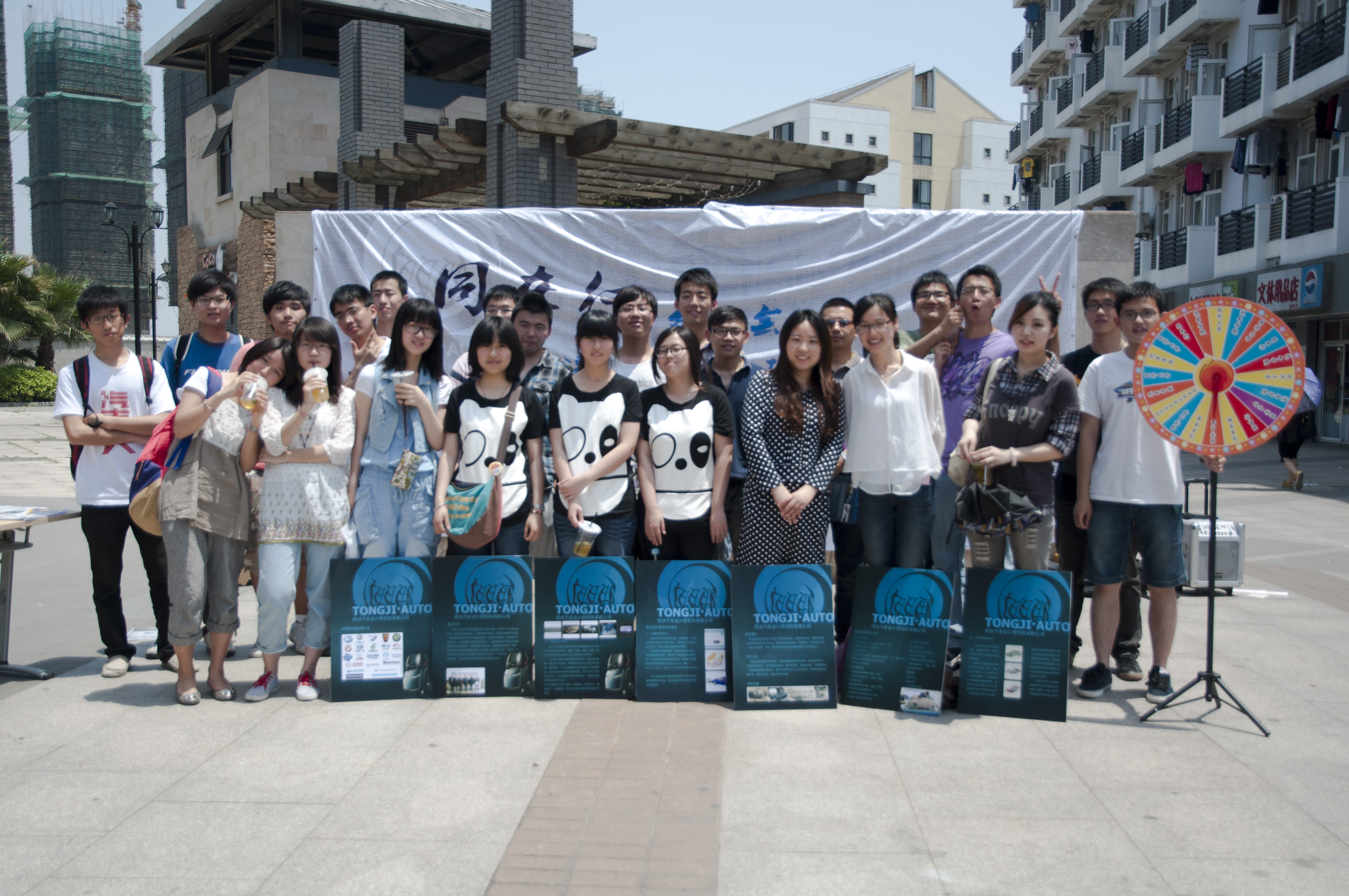 11:30 发布会准时开始,在主持人的号召下,不断有同学加入到活动中来,到了12:00现场气氛达到了高潮,各个游戏摊位前都围满了参与游戏的同学,抽奖转盘前更是排起了长龙。中午灼热的阳光丝毫没有减退同学们参与活动的热情,随着幸运大奖一个接一个被抽出,现场传出了一阵阵惊呼声。现场的200本杂志《同车行》也在很短的时间里就被领取一空,本次《同车行》发布会暨同济汽车设计研究院推介会取得了圆满成功。