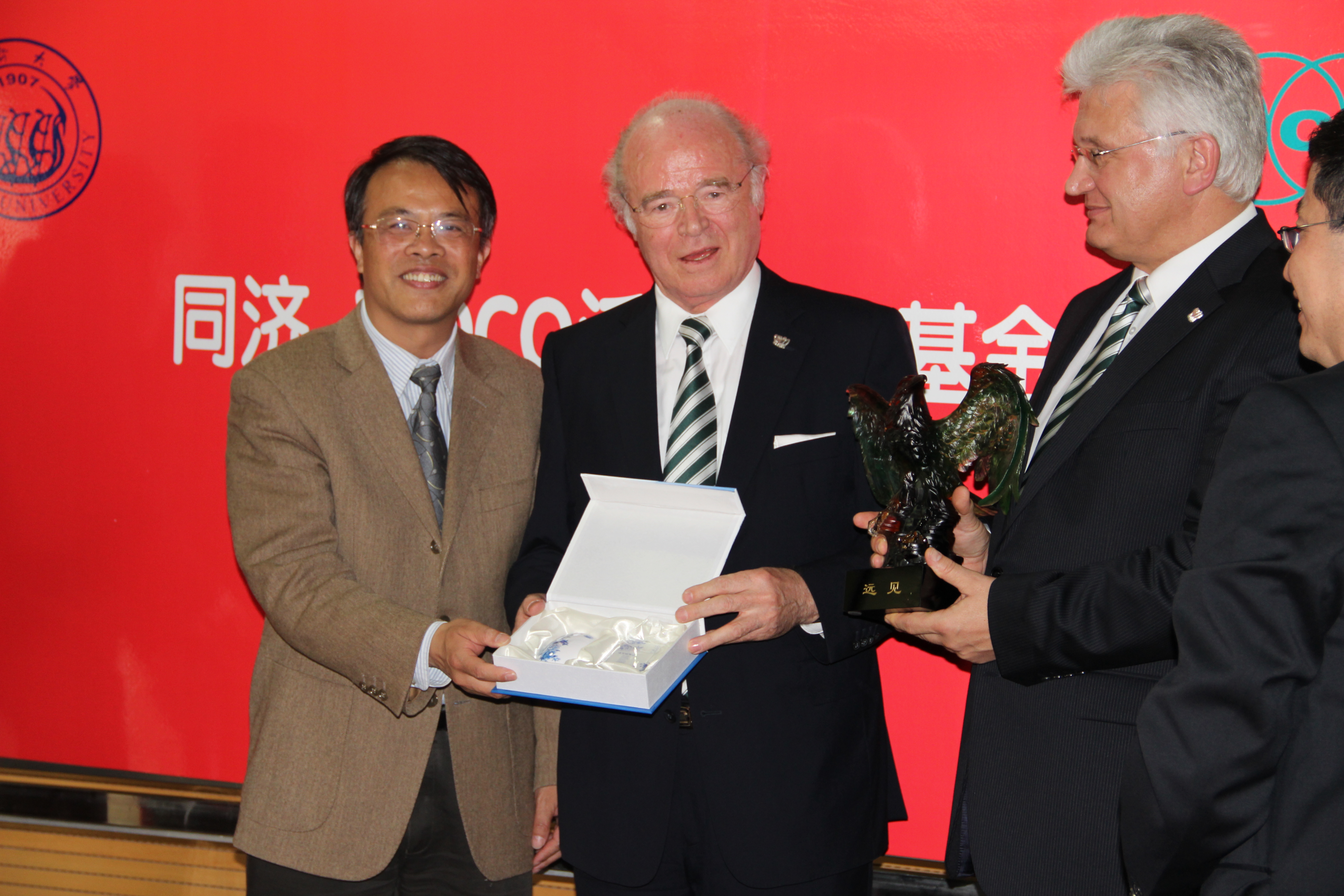随后,余卓平院长与Wolf先生签署了合作框架协议,陈翌书记与Kracht 先生签署了合作基金协议,并互相赠送了纪念品。