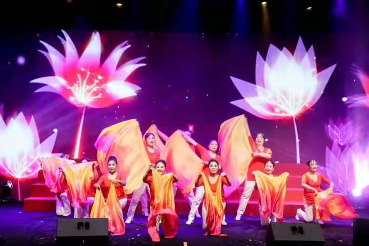 安驰社区居委会带来舞蹈表演《伟大复兴》,展现了中华民族在中国共产党的领导下,为实现中国梦所付出的不懈努力及其取得的辉煌成就。新生院学生代表李依桐同学的独舞表演《红玉丹心》传承中国传统文化,以专业的舞姿折服了现场的观众。