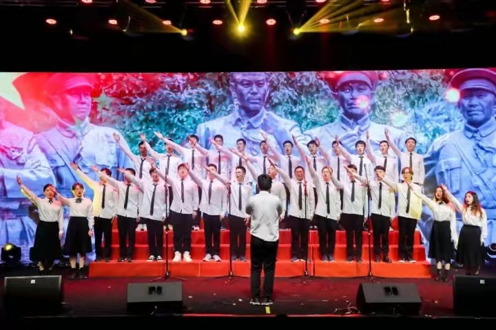 教师合唱团、各年级同学共13支队伍放声高歌,抒发赤诚的爱国之情和不忘革命初心,勇担时代使命的坚定信念。
