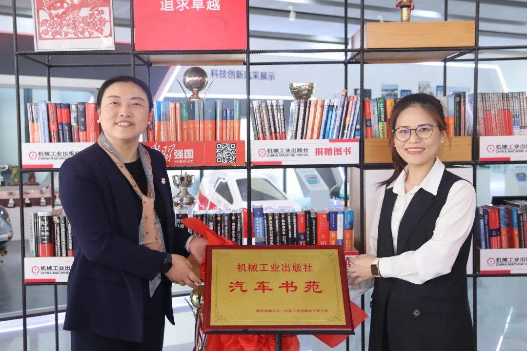 党委书记曹静和机械工业出版社汽车分社赵海青社长为机械工业出版社“汽车书苑”揭牌。机械工业出版社汽车分社向疯情书库