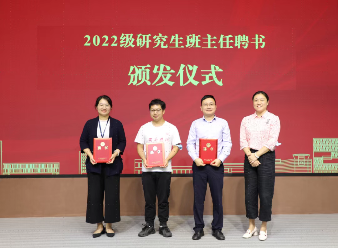 党委书记曹静向2022年研究生班主任颁发了聘书,希望各位班主任能够聚焦学校学术和育人第一价值追求,带领同学们一起奋发向上,追求卓越,迈步新征程。